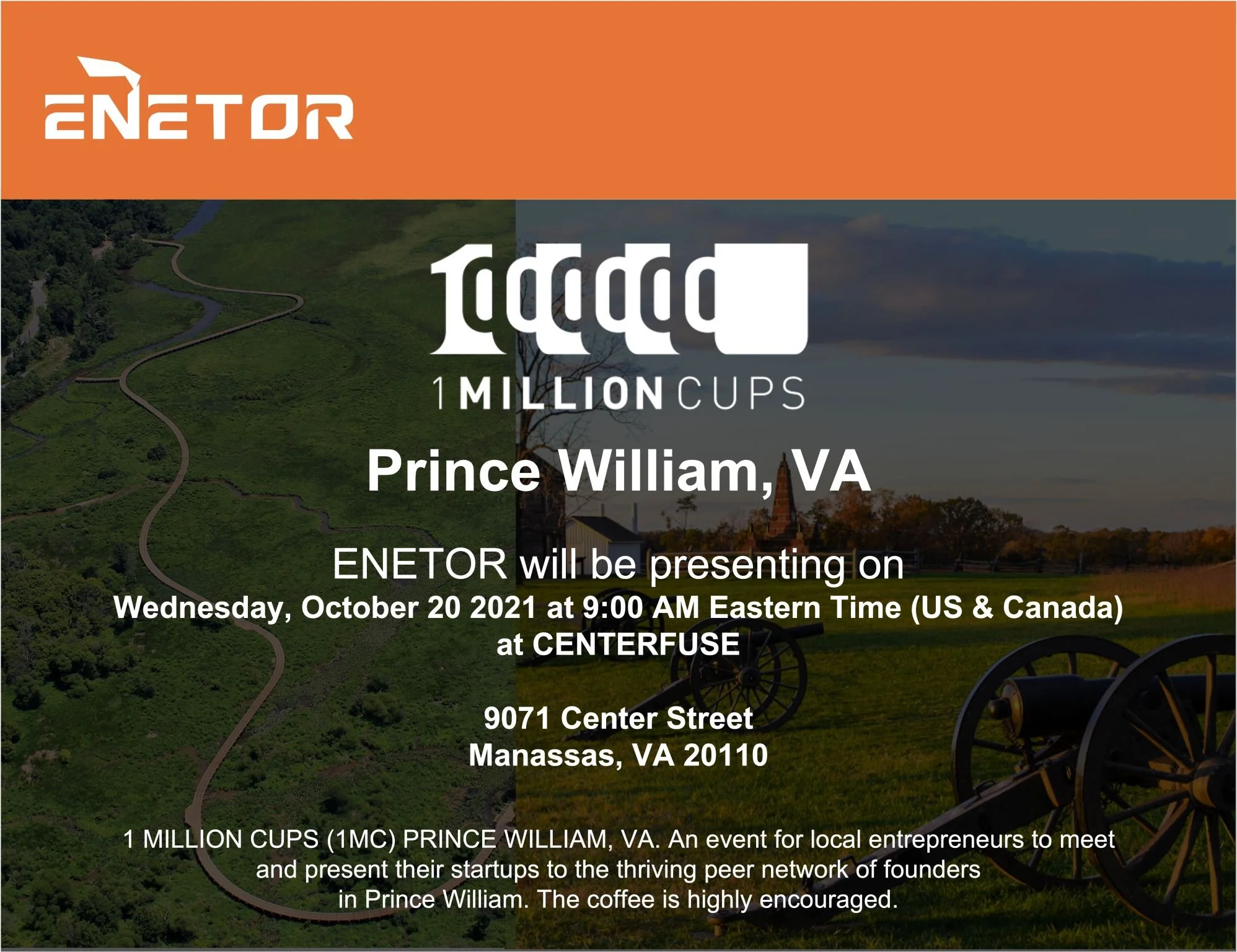 First in person presentation of ENETOR, happy that we were selected to present at 1MillionCups Prince William County, VA on October 20th, 2021.